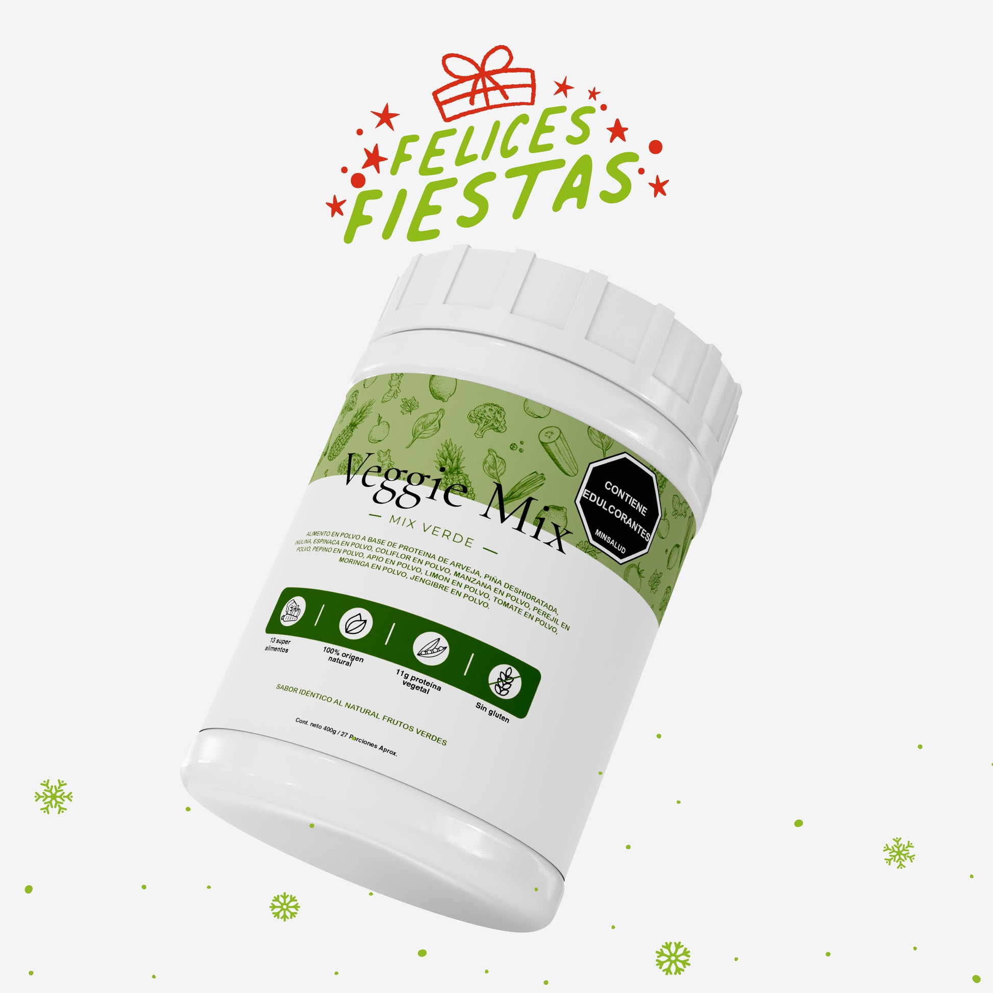 El Batido de frutos Verdes – Veggie Mix de Nutrabrand es un alimento funcional en polvo formulado a base de proteína de arveja, y una combinación de ingredientes naturales como piña deshidratada, inulina, espinaca en polvo, apio en polvo, limón en polvo, manzana verde en polvo, moringa en polvo, jengibre en polvo, entre otros. Su aporte de nutrientes ayuda a complementar una alimentación equilibrada.