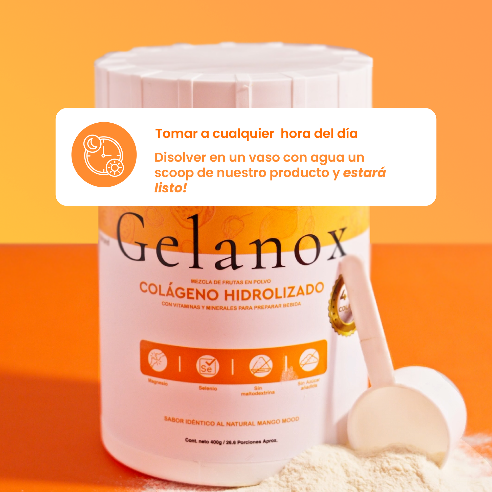 Gelanox de NutraBrand es un alimento funcional formulado con colágeno hidrolizado de alta pureza y una selección de superfrutas tropicales. Diseñado para integrarse fácilmente en tu rutina diaria, este producto es ideal para quienes buscan complementar su alimentación con ingredientes de origen natural.