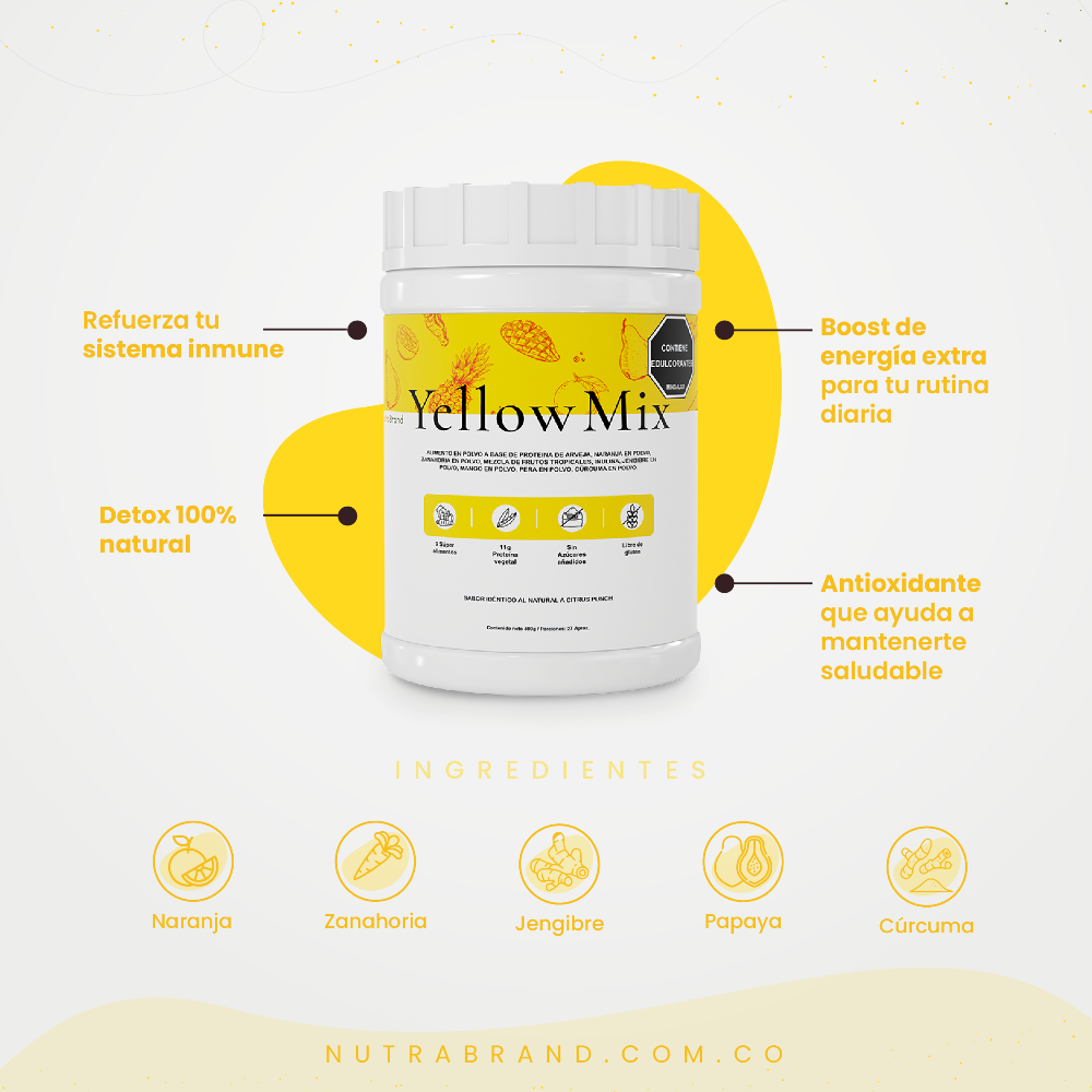 En nuestra búsqueda constante por mejorar la salud y el bienestar, es esencial ser conscientes de lo que consumimos diariamente. Yellow Mix es más que un simple batido; es una fusión cuidadosamente diseñada de ingredientes naturales que promueven un sistema inmunológico fuerte y una vida saludable.